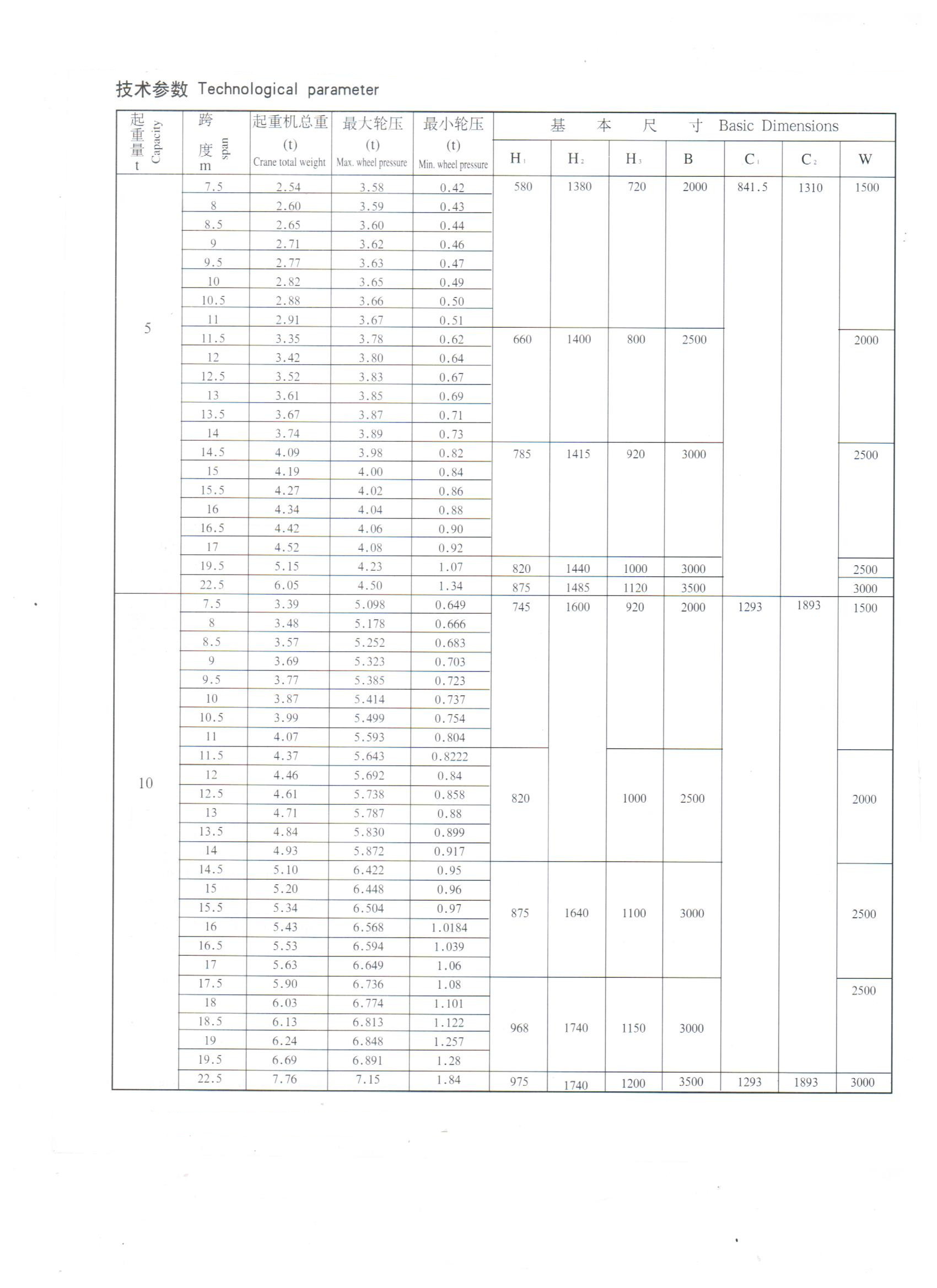 1.2.5 產品型號注解 a)地面操縱、起重量3t、跨度10.5m、工作級別A5表示方法為:LD3t-10.5A5D. b)操縱室操縱、起重量5t、跨 度16.5m、工作級別A5表示方法:LD5t-16.5A5S.